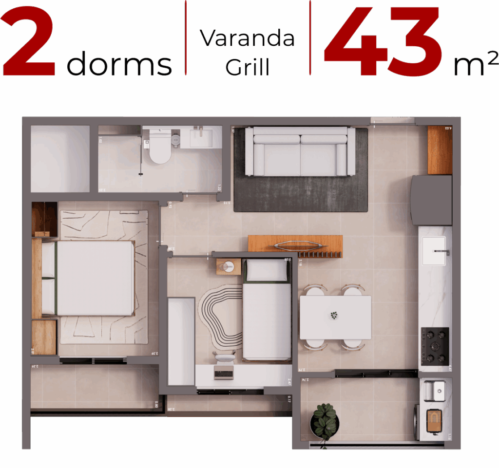 Seu resort particular em Itaquera! More em um condomínio com piscinas estilo praia, deck molhado, quadras, 4 churrasqueiras, salões de festas, academia, coworking, brinquedoteca, pet place e até bosque preservado. Lazer completo para toda a família. Apartamentos de 43 m², na Estrada do Pêssego, 1999 – Colônia (Av. Jacu-Pêssego) – Itaquera/SP.